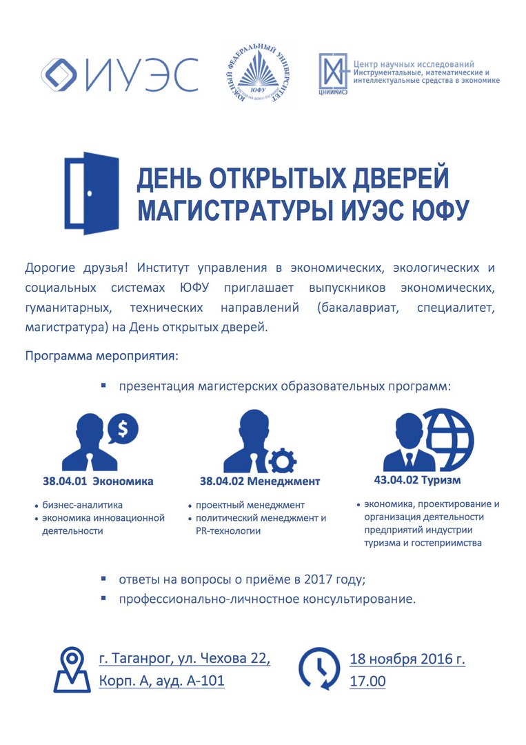 ИУЭС ЮФУ приглашает выпускников экономических, гуманитарных и технических направлений на День открытых дверей!