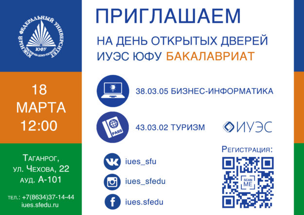 Студентам ИУЭС ЮФУ (бакалавриат и магистратура) предлагается принять участие в программах академического обмена и отучиться семестр в зарубежном вузе-партнере: Университет экономики в Братиславе (https://www.euba.sk) — Словакия Белорусский государственный университет (http://www.bsu.by) — Белоруссия Университет Аристотеля в Салониках (https://www.auth.gr/en) — Греция Для более подробной информации можете обращаться в ауд.А-106 куратор международной деятельности Бондарев Максим Германович куратор академического обмена Защитина…