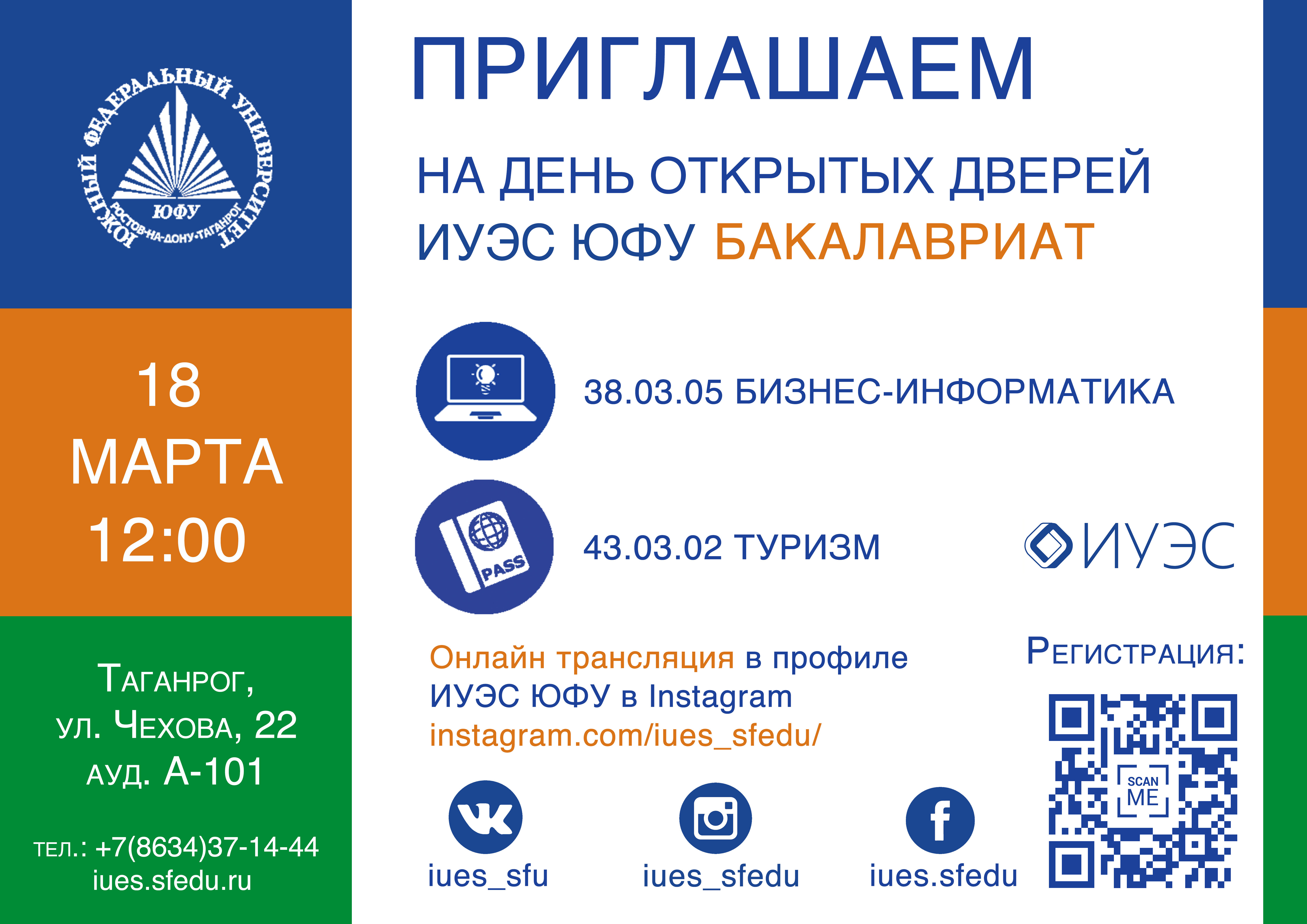 18 марта в 12.00 в Институте управления в экономических, экологических и социальных системах ЮФУ состоится День открытых дверей: бакалавриат.