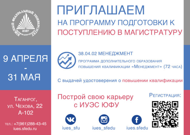 В ИУЭС ЮФУ осуществляется подготовка к поступлению в магистратуру по направлению менеджмент