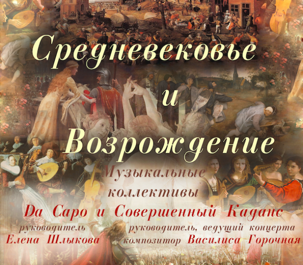 Подлинное Средневековье, к которому не прикасалась рука современной культуры — манускрипты Гийома де Машо и его современников… Средневековье и Возрождение в авторской аранжировке и концертном претворении… Средневековье, проникшее в нашу реальность и живущее в сознании композиторов… Наряду с подлинными аутентичными и аранжированными образцами былых эпох прозвучат авторские произведения в старинном стиле, а также шедевр органного…