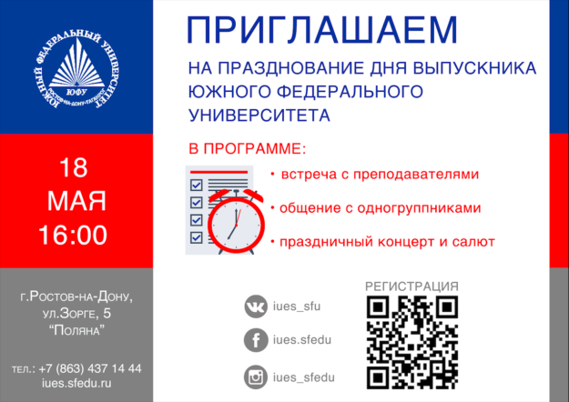 Приглашаем выпускников ИУЭС ЮФУ (ФЭМП, ФУЭС, ЕГФ) на «День выпускника ЮФУ»