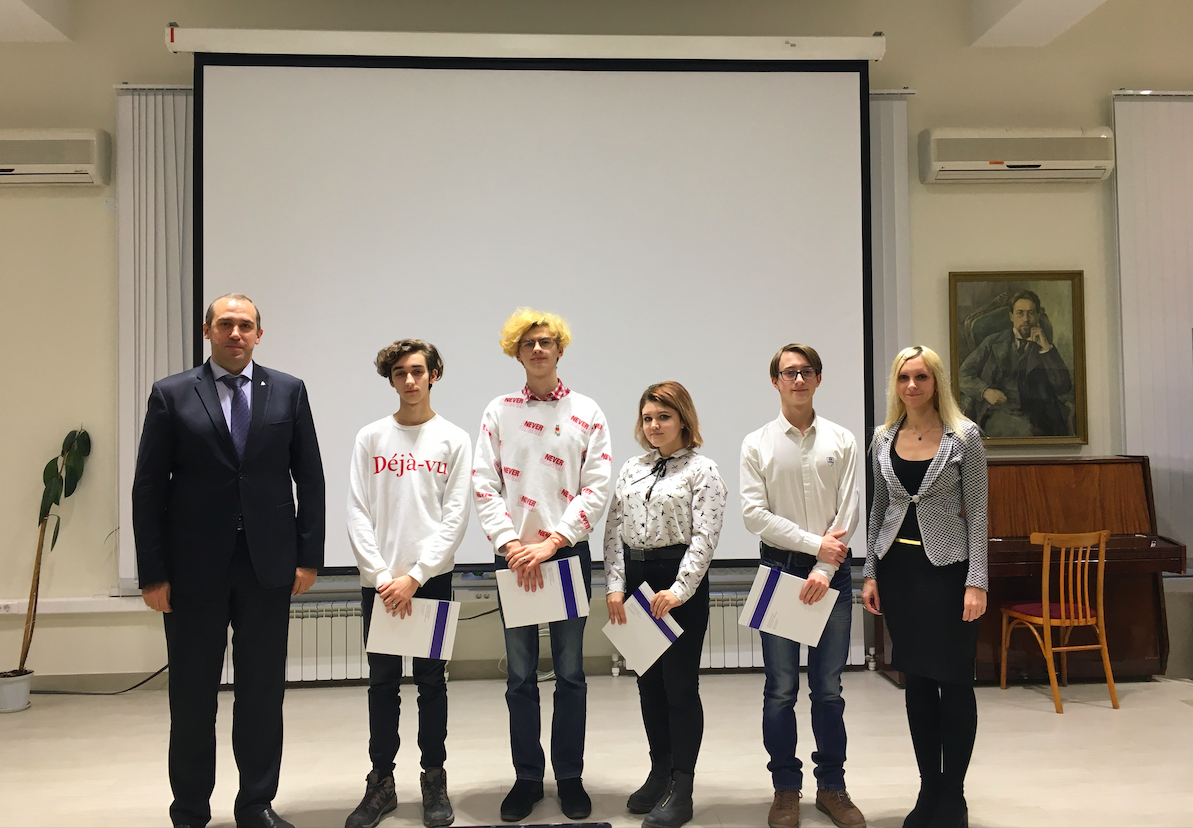 По итогам полученных промежуточных результатов на Ученом совете ИУЭС ЮФУ директор Павел Павлов и заведующая кафедрой лингвистического образования Юлия Привалова вручили студентам памятные сувениры с символикой Южного федерального университета и выписки оценок, полученных по итогам сданных зачетов и экзаменов.