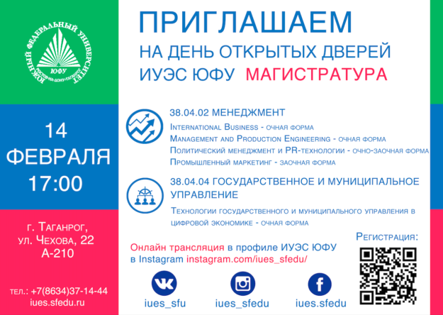 ИУЭС ЮФУ приглашает на День открытых дверей по магистерским программам