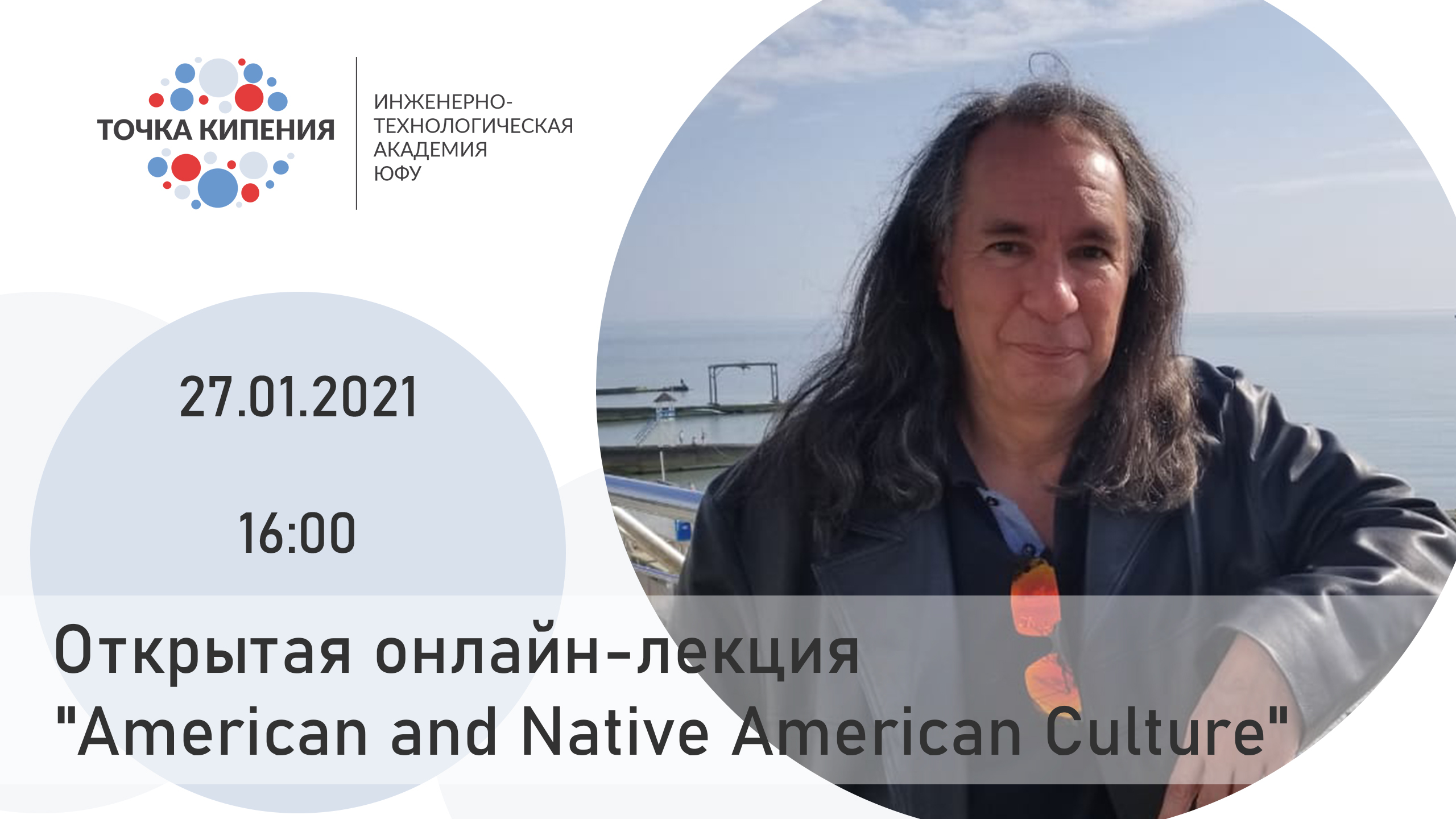 27 января 2021 года в 16.00 (по московскому времени) в рамках работы Открытого дистанционного научно-популярного лектория Института управления в экономических, экологических и социальных системах Южного федерального университета «Open popular science lectures_IMES SFEDU»состоится открытая научно-популярная лекция на тему «American and Native American Culture» от профессора Дэвида Эрбена (Университета Толедо, США), который является визит-профессором Института управления в экономических, экологических и социальных системах Южного федерального университета.