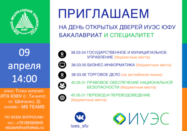День открытых дверей ИУЭС ЮФУ: направления бакалавриата и специалитета