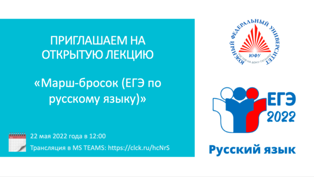 22 мая 2022 года в 12.00 (по московскому времени) в рамках работы Открытого дистанционного научно-популярного лектория Института управления в экономических, экологических и социальных системах Южного федерального университета «Open popular science lectures_IMES SFEDU»состоится мастер-класс на тему «Марш-бросок (ЕГЭ по русскому языку)» от к.фил.н доцента кафедры лингвистического образования, эксперта областной предметной комиссии по русскому языку Мери Юрьевны Нечепуренко,…