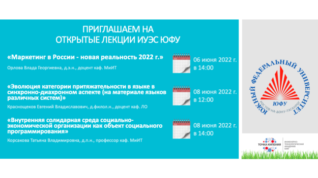ИУЭС ЮФУ приглашает на открытые лекции
