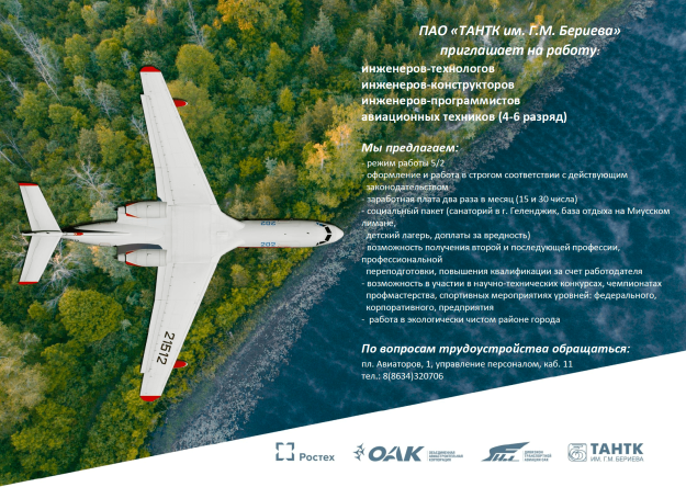 ПАО «ТАНТК им Г.М. Бериева» приглашает на работу обучающихся старших курсов и выпускников
