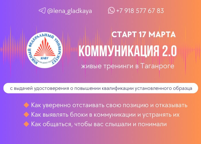 17 марта в Таганроге стартует оффлайн курс КОММУНИКАЦИЯ 2.0