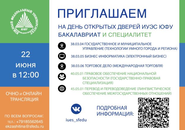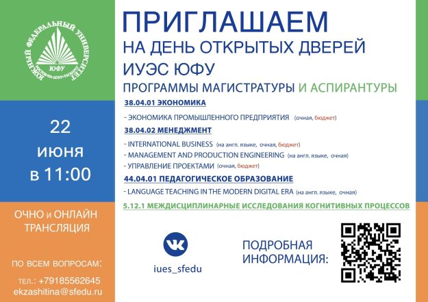 ИУЭС ЮФУ приглашает на день открытых дверей по программам магистратуры и аспирантуры