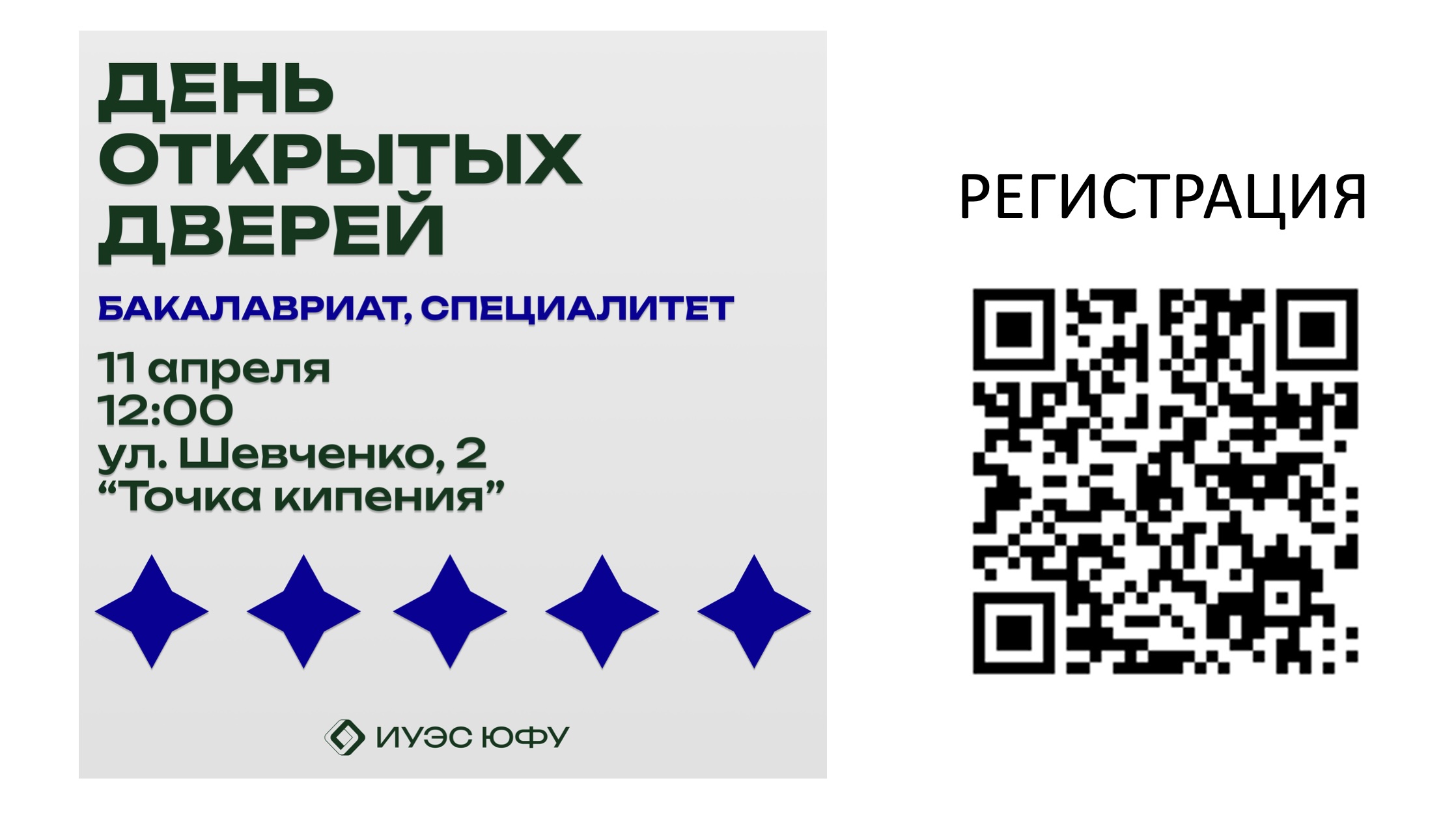 11 апреля 2026 года в 12.00 Институт управления в экономических, экологических и социальных системах ЮФУ проведет День открытых дверей: направления бакалавриата и специалитета. Для участия в мероприятии приглашаются выпускники школ и средних учебных заведений, а также все заинтересованные лица.