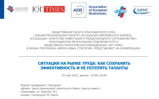 Приглашаем вас принять участие в работе HR-конференции «Ситуация на рынке труда: как сохранить эффективность и не потерять таланты», которая состоится в Краснодаре 19.05.2022 с 14.00–16.00 в гибридном формате. Онлайн – платформа Teams. Оффлайн – Центр финансовой грамотности Банка «Центр Инвест» (Краснодар, ул. Красная, 91). Программа HR-конференции – в приложении (скачать). Конференция проходит в рамках долгосрочной…