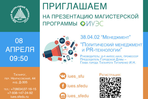 Апр52017 Успейте подать заявку на участие в презентации магистерской программы по направлению 38.04.02 «Менеджмент» «Политический менеджмент и PR-технологии»