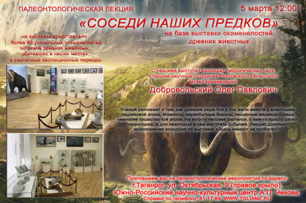 Фев252017 Палеонтологическая лекция «Соседи наших предков» на базе выставки окаменелостей древних животных