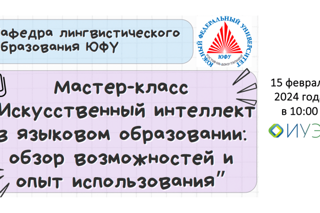 Фев72024 ИУЭС ЮФУ приглашает на мастер-класс «Искусственный интеллект в языковом образовании: обзор возможностей и опыт использования»