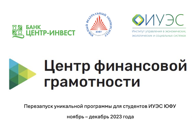 Окт262023 Объявлен набор студентов ИУЭС ЮФУ на прохождение обучения в Центре финансовой грамотности Банка «Центр-Инвест»