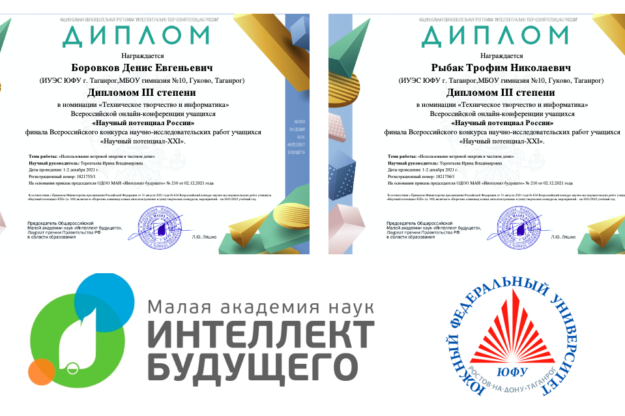 Дек162021 Обучающиеся школы проектов ИУЭС ЮФУ стали победителями Всероссийского конкурса научно-исследовательских работ